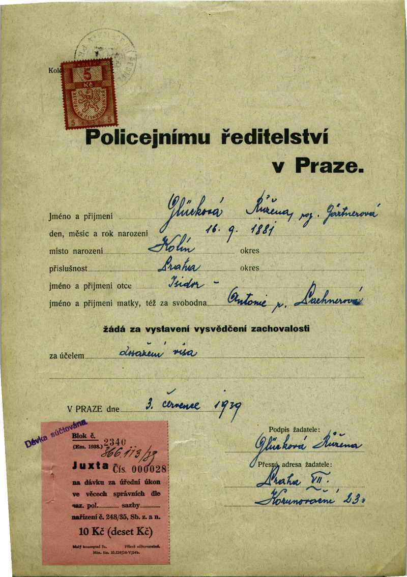 Nationalarchiv Prag > Polizei-Direktion Prag > 1931-1940 > G > Glücková Růžena