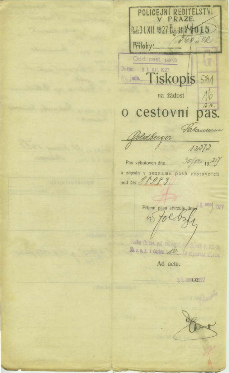 Nationalarchiv Prag > Polizei-Direktion Prag > 1931-1940 > G > Goldberger Šalomoun