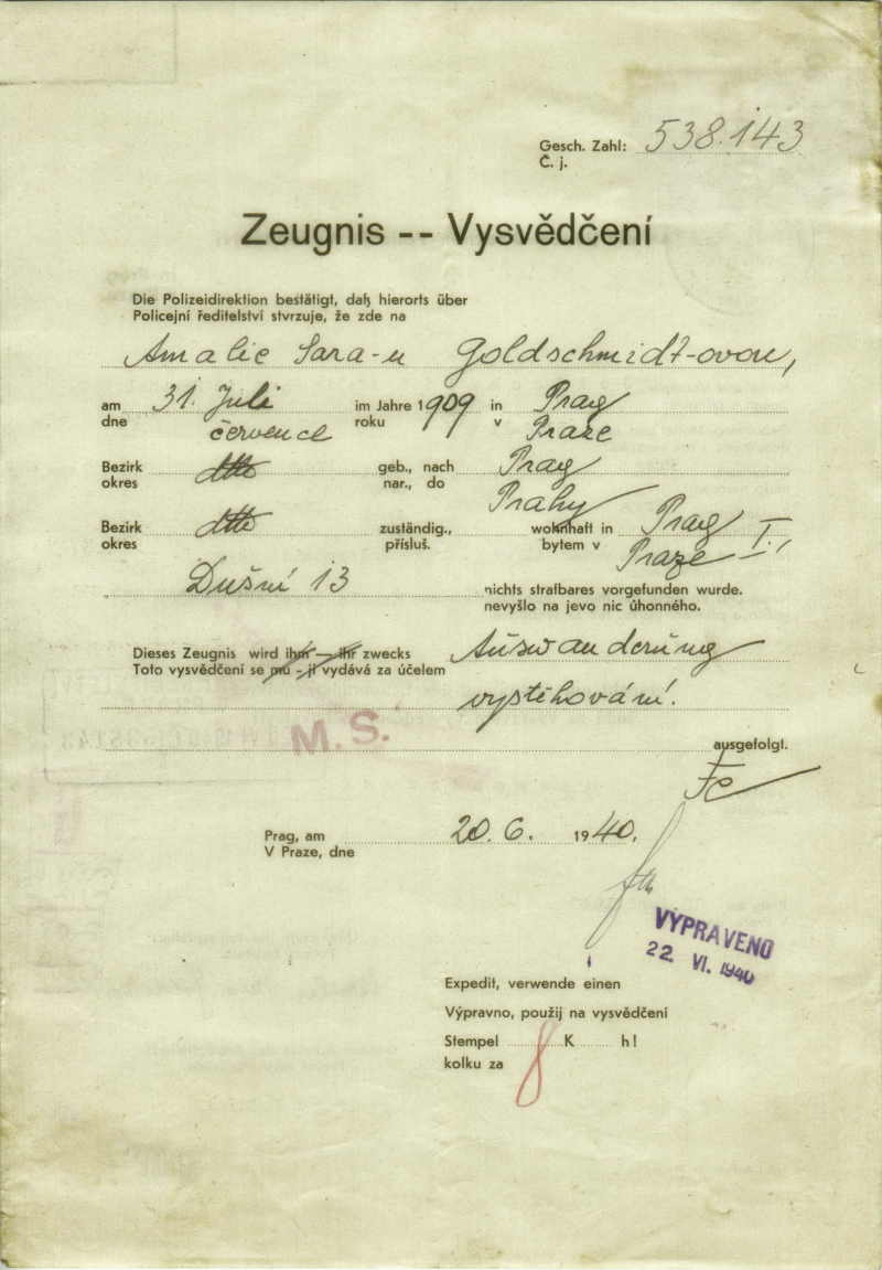 Nationalarchiv Prag > Polizei-Direktion Prag > 1931-1940 > G > Goldschmidtová Amálie