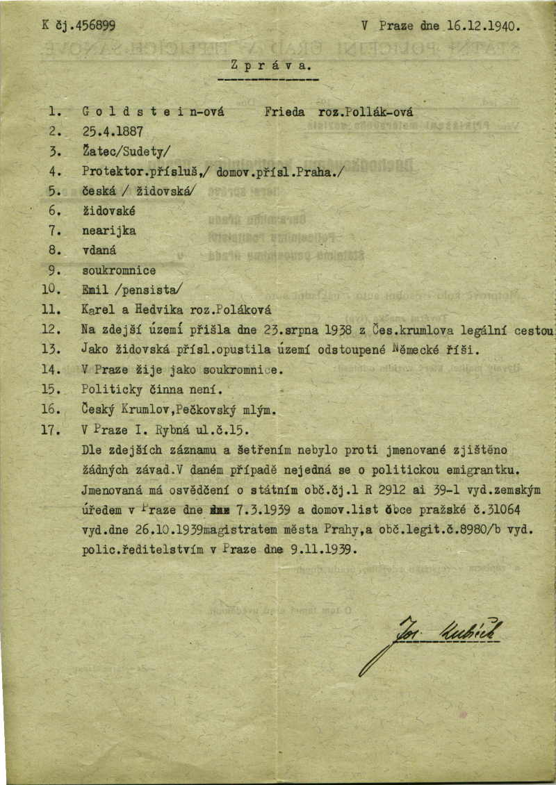 Nationalarchiv Prag > Polizei-Direktion Prag > 1931-1940 > G > Goldsteinová Frieda