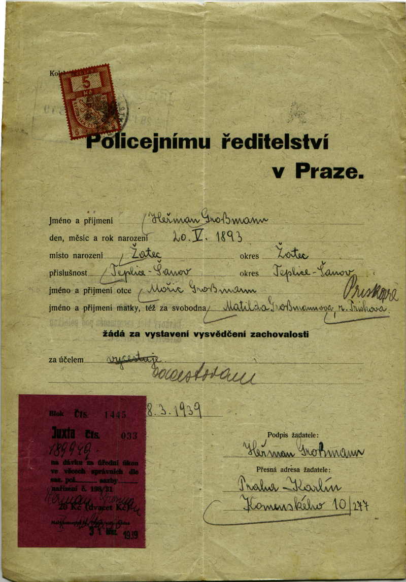 Nationalarchiv Prag > Polizei-Direktion Prag > 1931-1940 > G > Grossmann Heřman