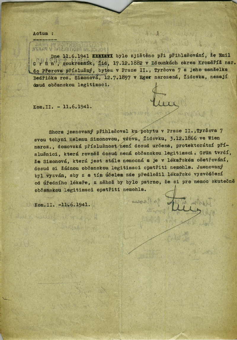 Nationalarchiv Prag > Polizei-Direktion Prag > 1941-1950 > G > Grün Emil