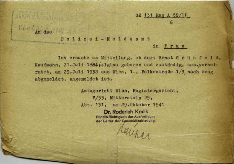 Nationalarchiv Prag > Polizei-Direktion Prag > 1941-1950 > G > Grünfeld Arnošt