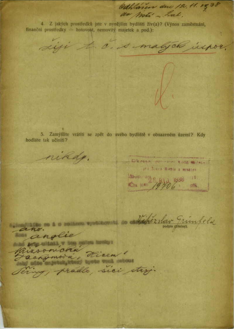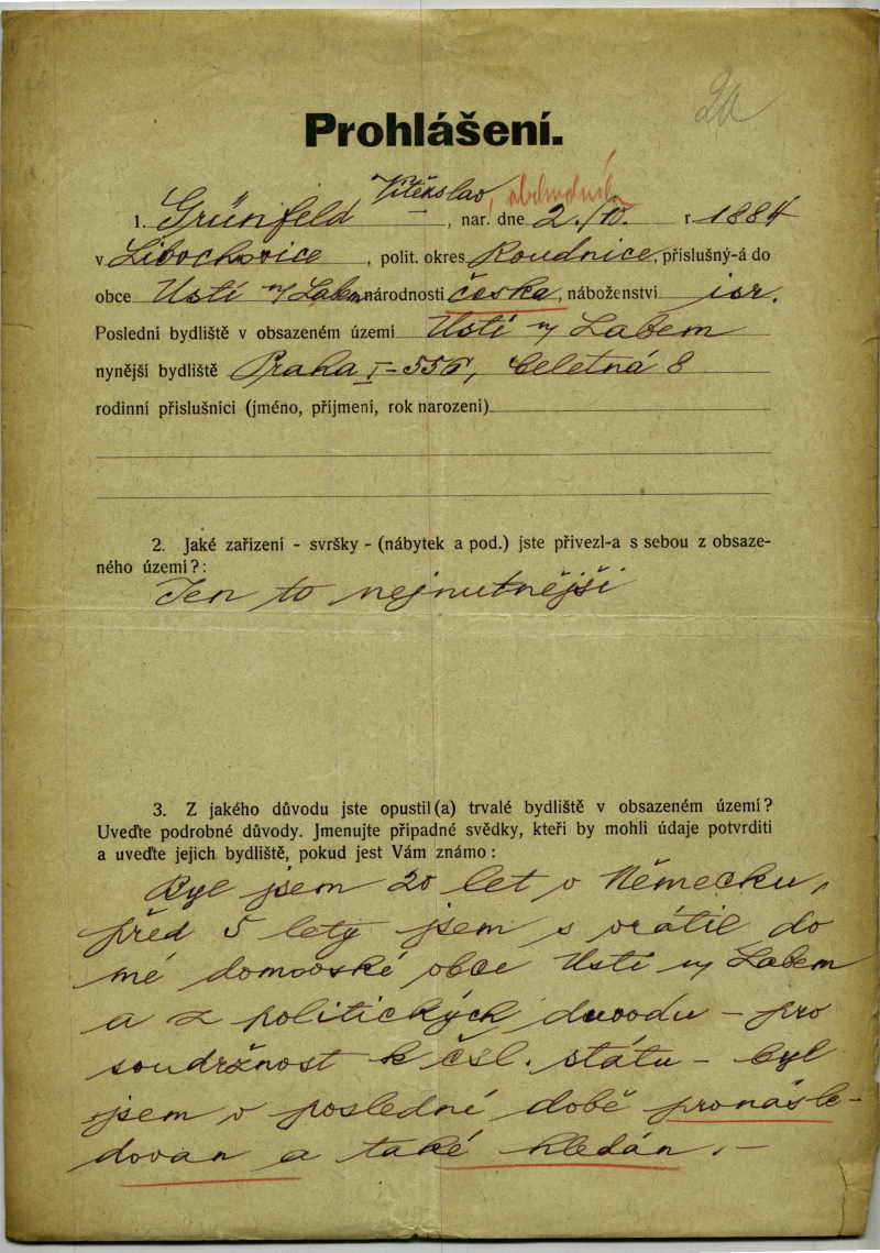 Grünfeld Siegfried: Refugee from border areas form