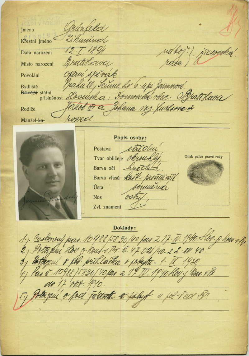 Grünfeld Zikmund: Identity card application