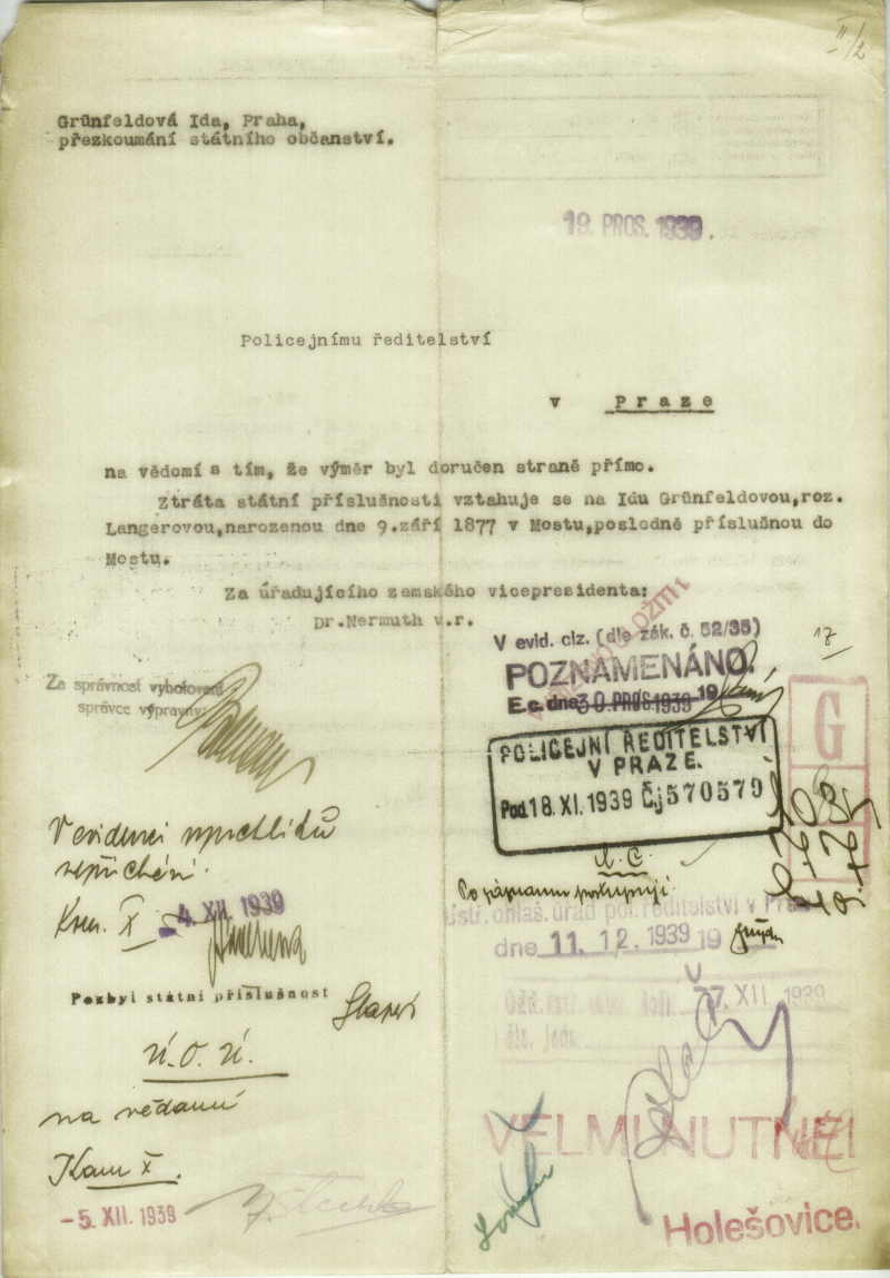 Grünfeldová Ida: Pozbytí státní příslušnosti