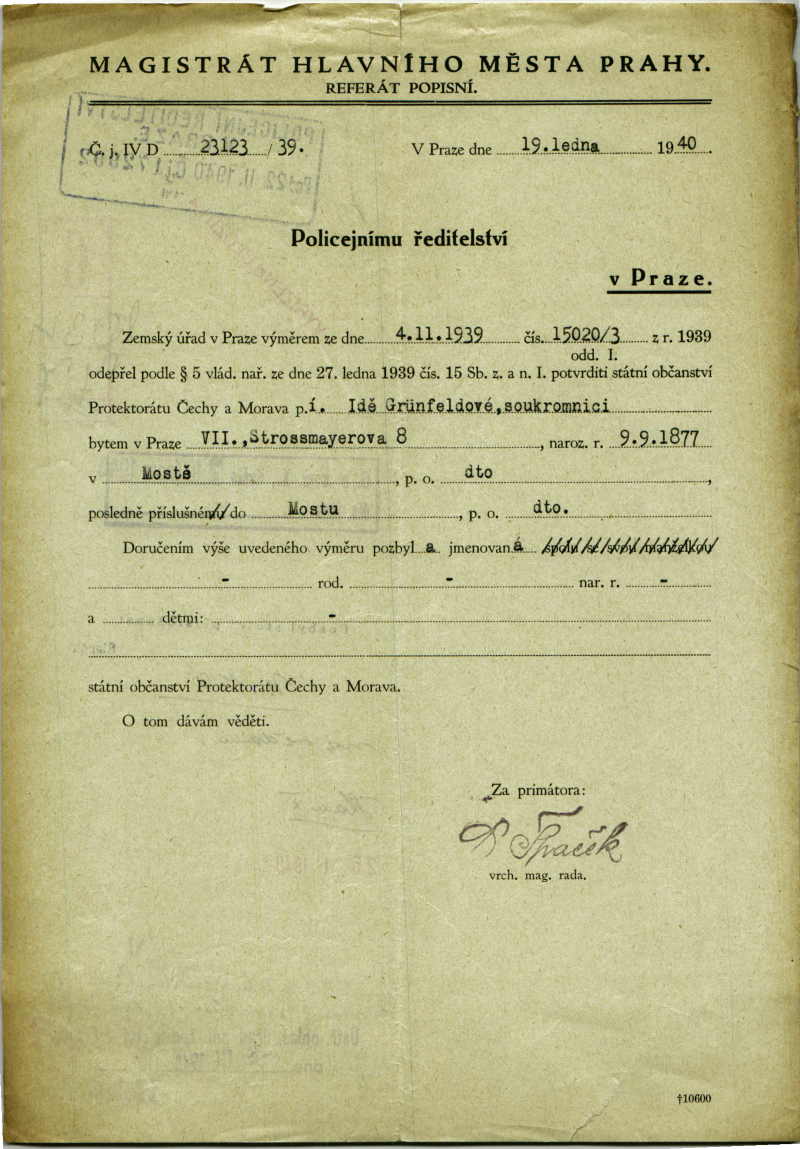 Nationalarchiv Prag > Polizei-Direktion Prag > 1941-1950 > G > Grünfeldová Ida