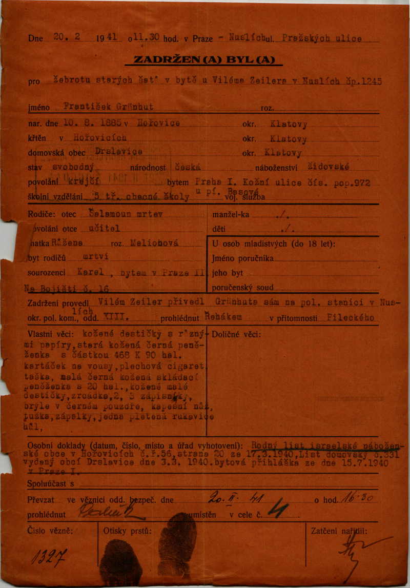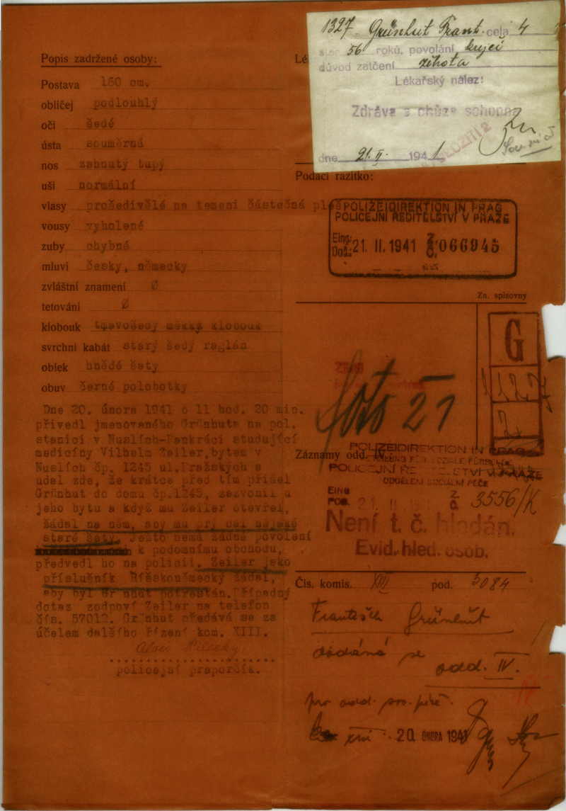 Nationalarchiv Prag > Polizei-Direktion Prag > 1941-1950 > G > Grünhut Josef