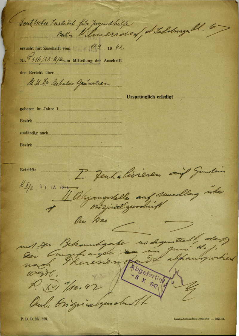 Nationalarchiv Prag > Polizei-Direktion Prag > 1941-1950 > G > Grünstein Mikuláš
