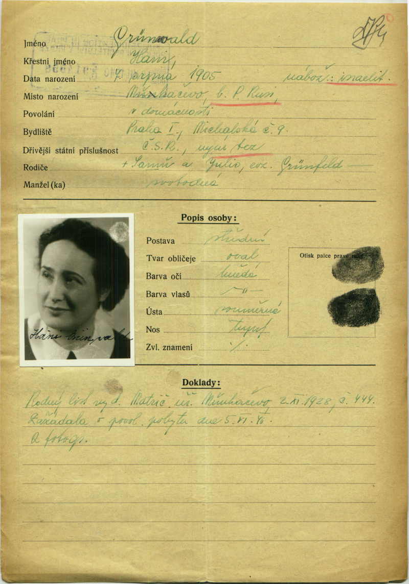 Nationalarchiv Prag > Polizei-Direktion Prag > 1941-1950 > G > Grünwaldová Hanna
