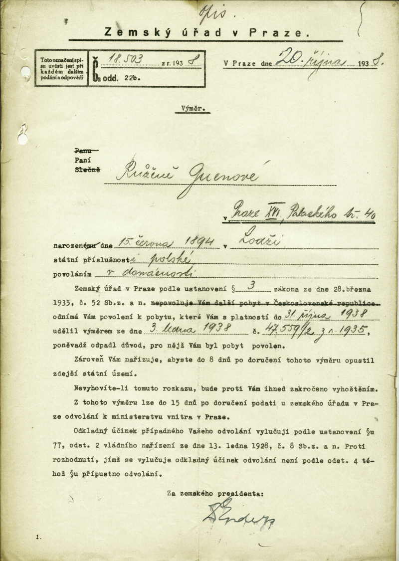 Nationalarchiv Prag > Polizei-Direktion Prag > 1941-1950 > G > Guenová Rachel