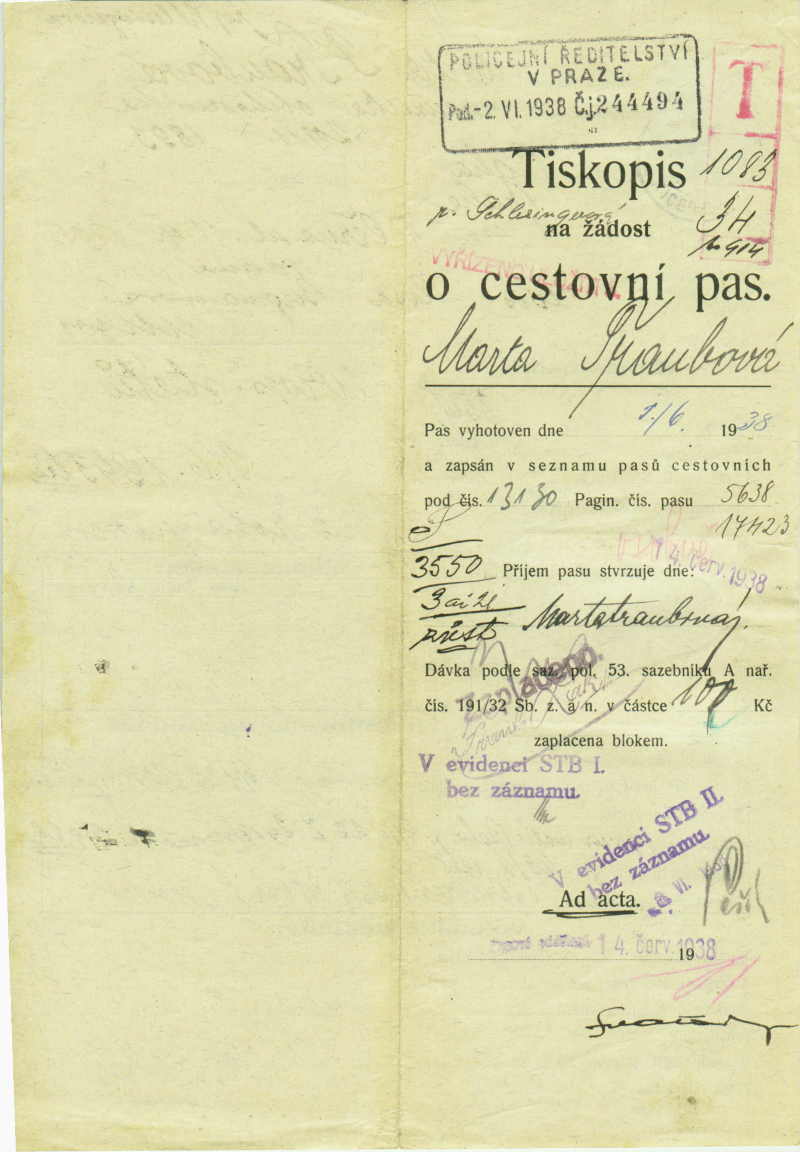 Nationalarchiv Prag > Polizei-Direktion Prag > 1931-1940 > T > Traubová Marta
