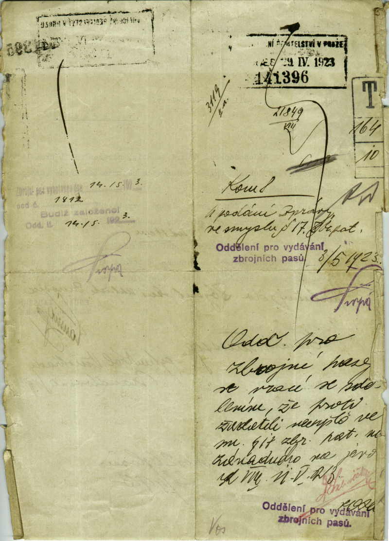 Taussig Eduard: Žádost o povolení k nošení střelné zbraně