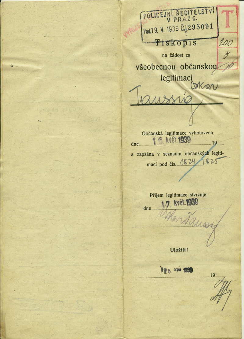 Taussig Oskar: Identity card application