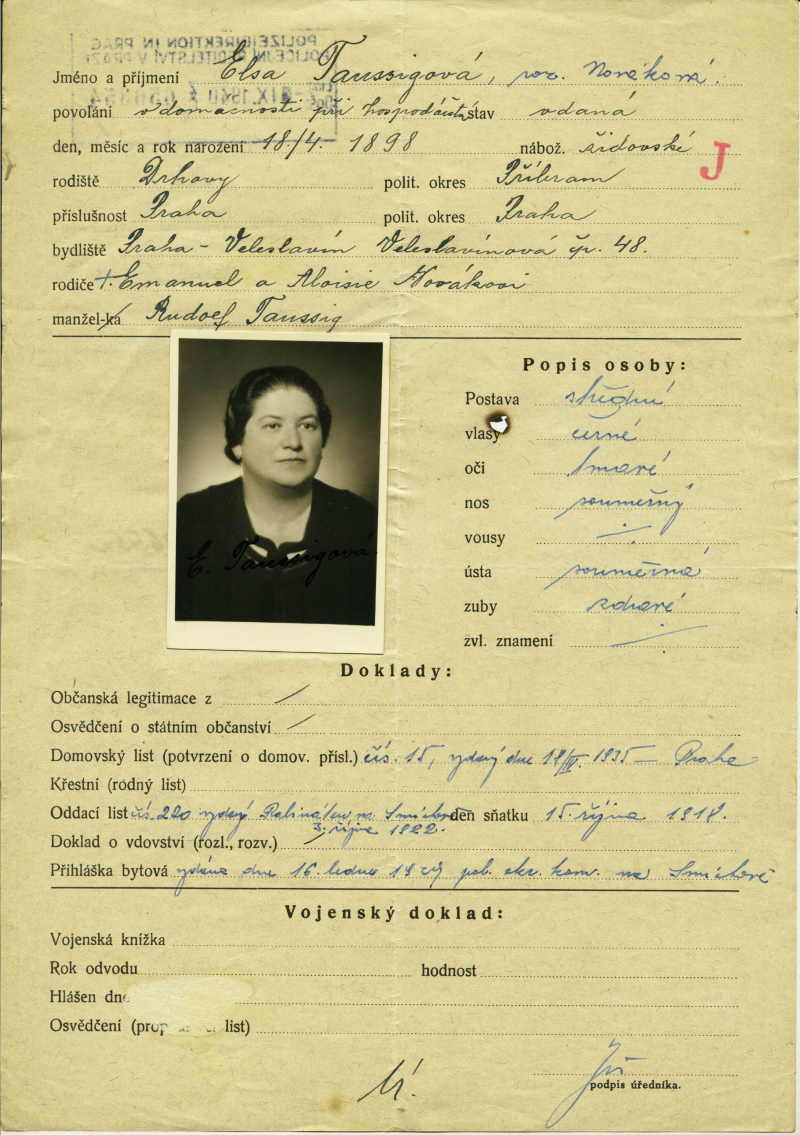 Nationalarchiv Prag > Polizei-Direktion Prag > 1931-1940 > T > Taussigová Elsa