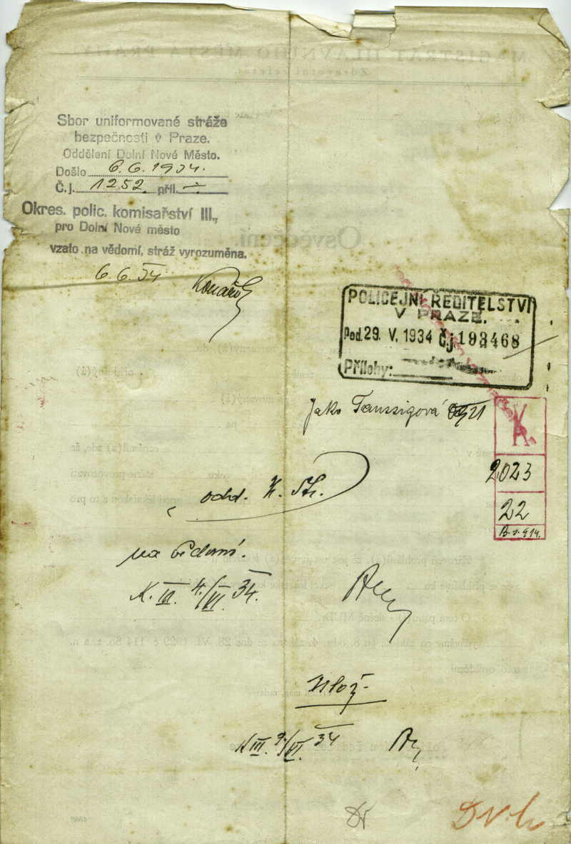 Nationalarchiv Prag > Polizei-Direktion Prag > 1931-1940 > T > Taussigová Anna