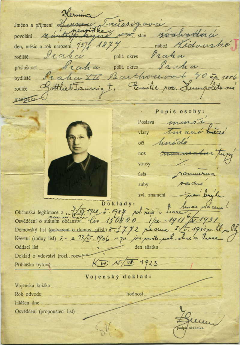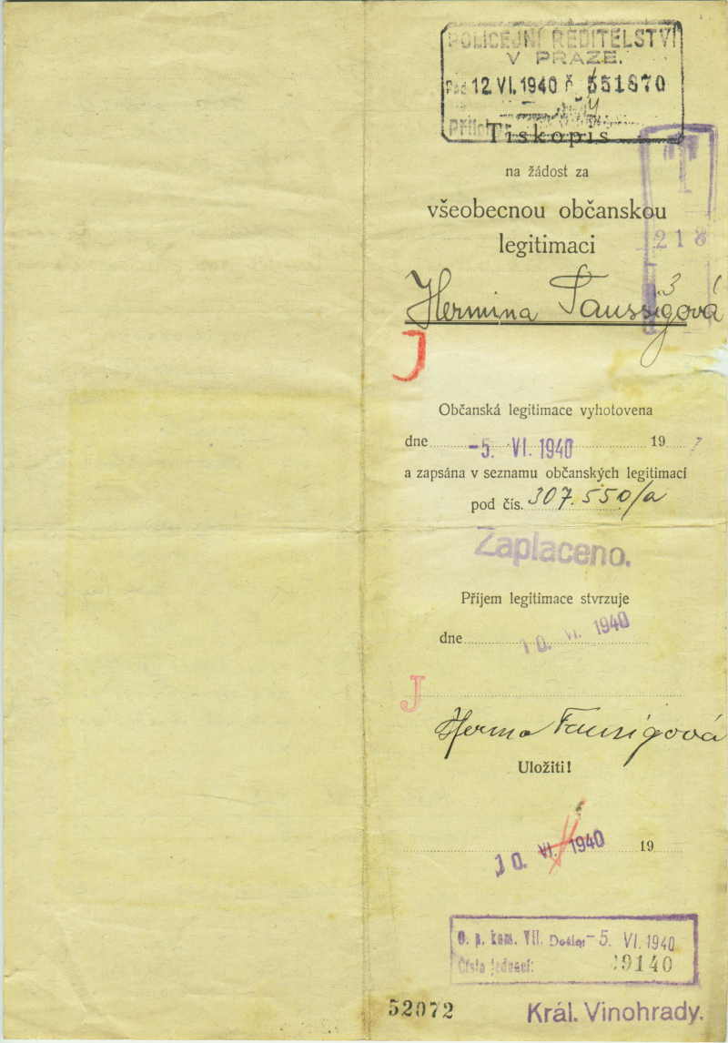 Taussigová Hermína: Identity card application