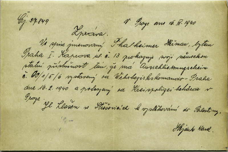 Thalheimer Heřman: Prokázání státní příslušnosti