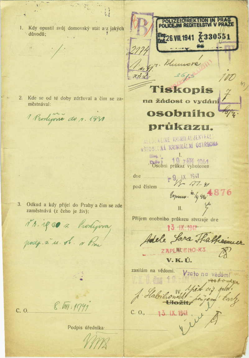 Nationalarchiv Prag > Polizei-Direktion Prag > 1941-1950 > T > Thalheimerová Adéla