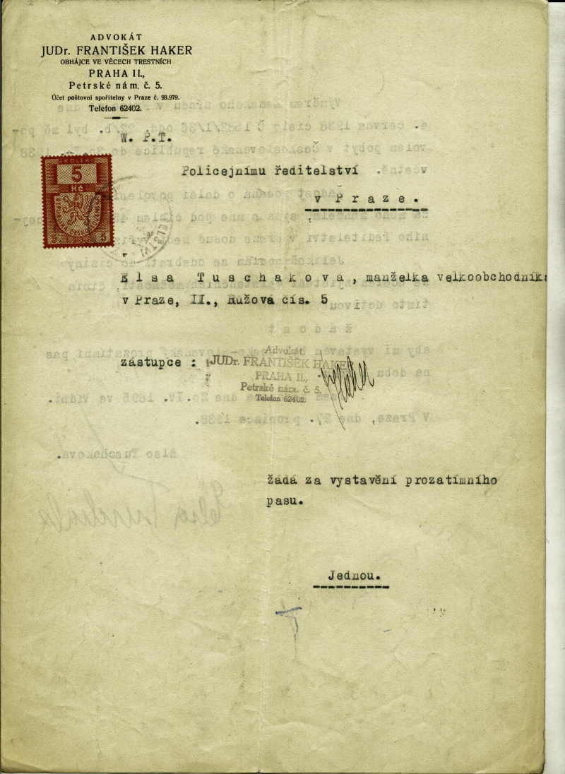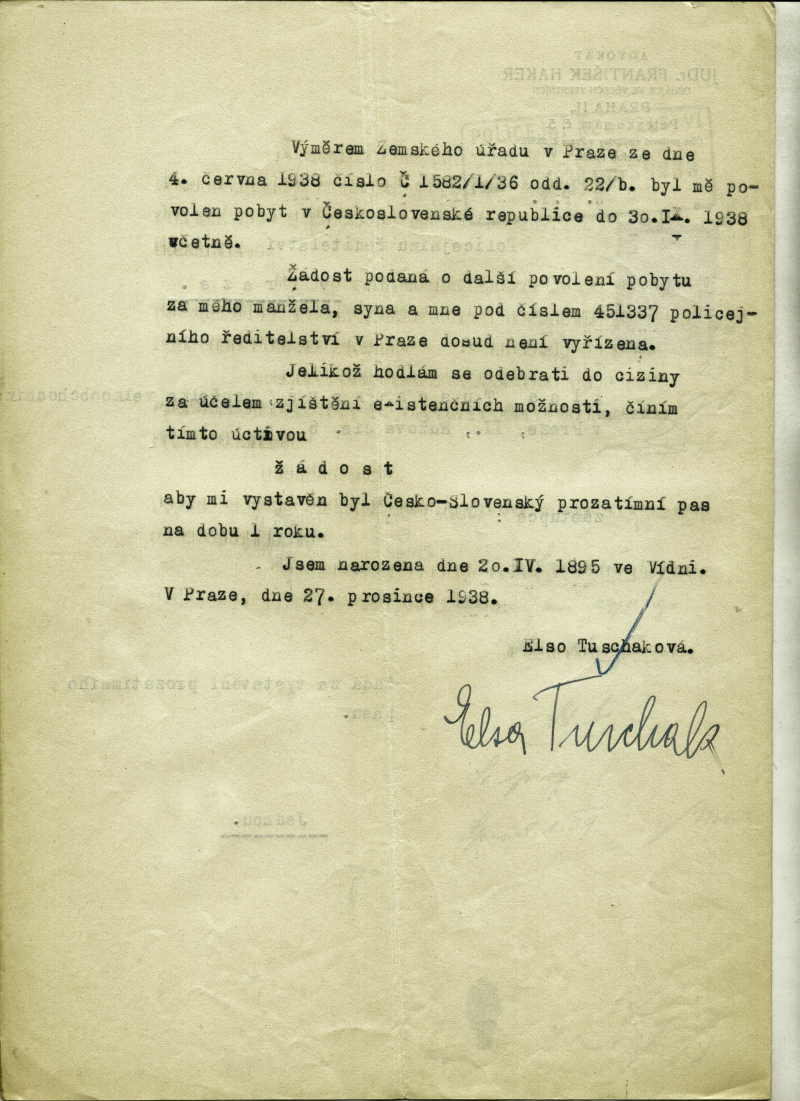 Tuschaková Elsa: Provisional passport form