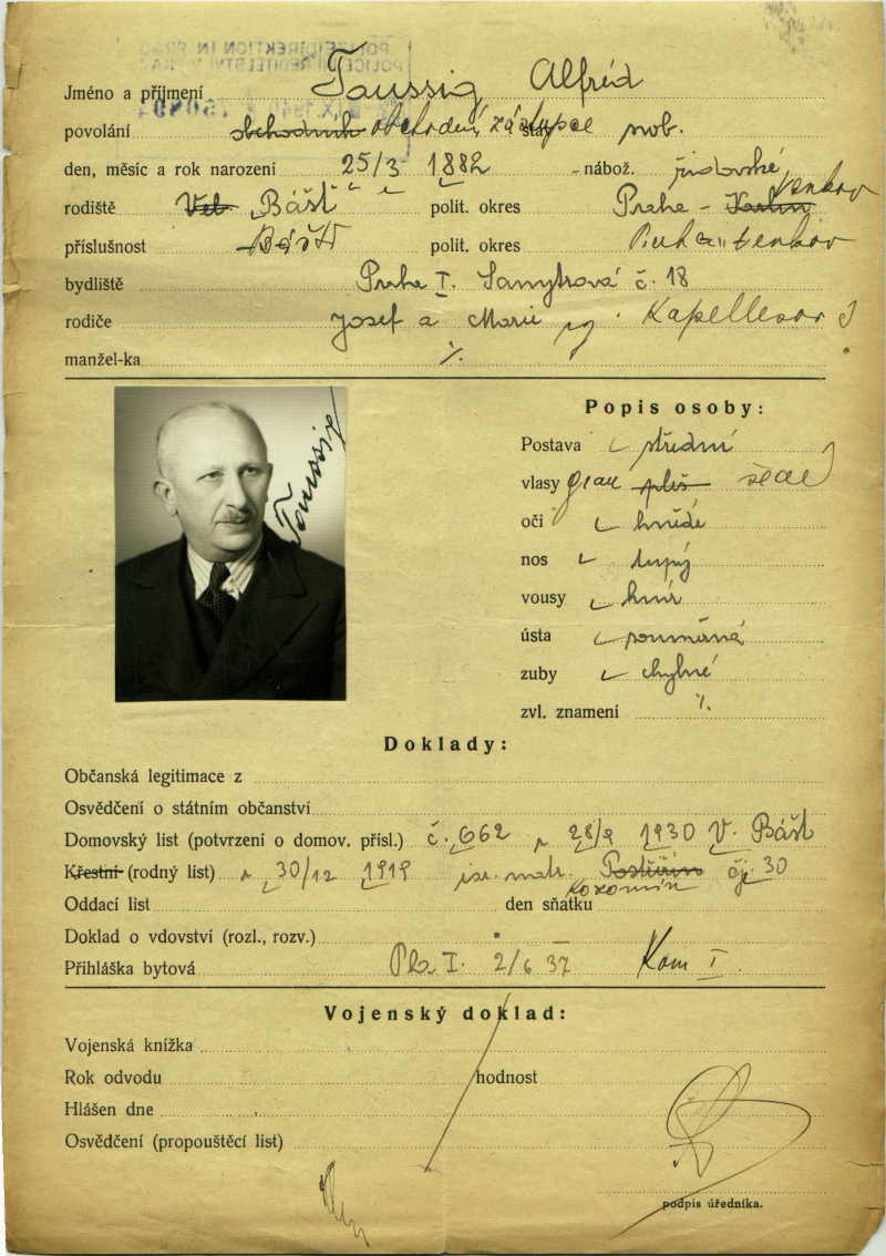 Nationalarchiv Prag > Polizei-Direktion Prag > 1941-1950 > T > Tausig Alfred