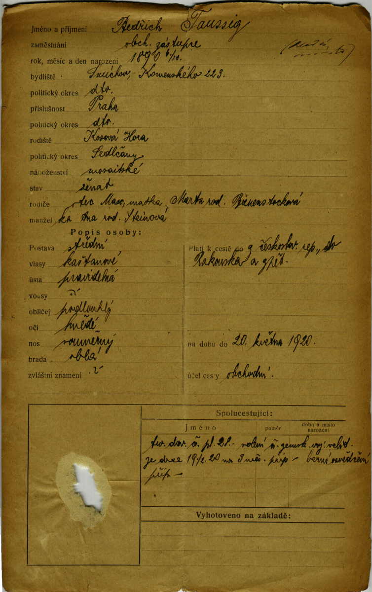 Nationalarchiv Prag > Polizei-Direktion Prag > 1941-1950 > T > Taussig Bedřich