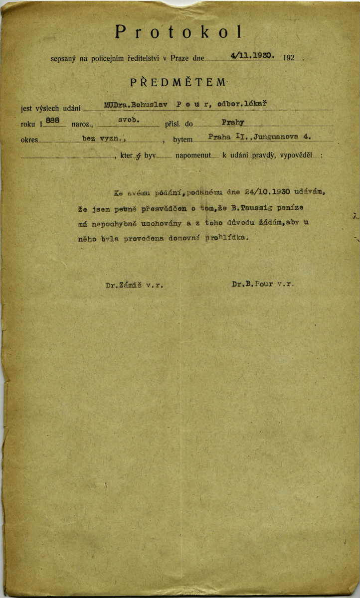 Nationalarchiv Prag > Polizei-Direktion Prag > 1941-1950 > T > Taussig Bedřich