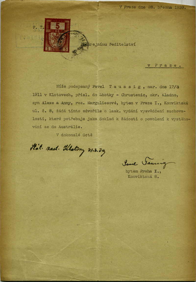 Nationalarchiv Prag > Polizei-Direktion Prag > 1941-1950 > T > Taussig Pavel