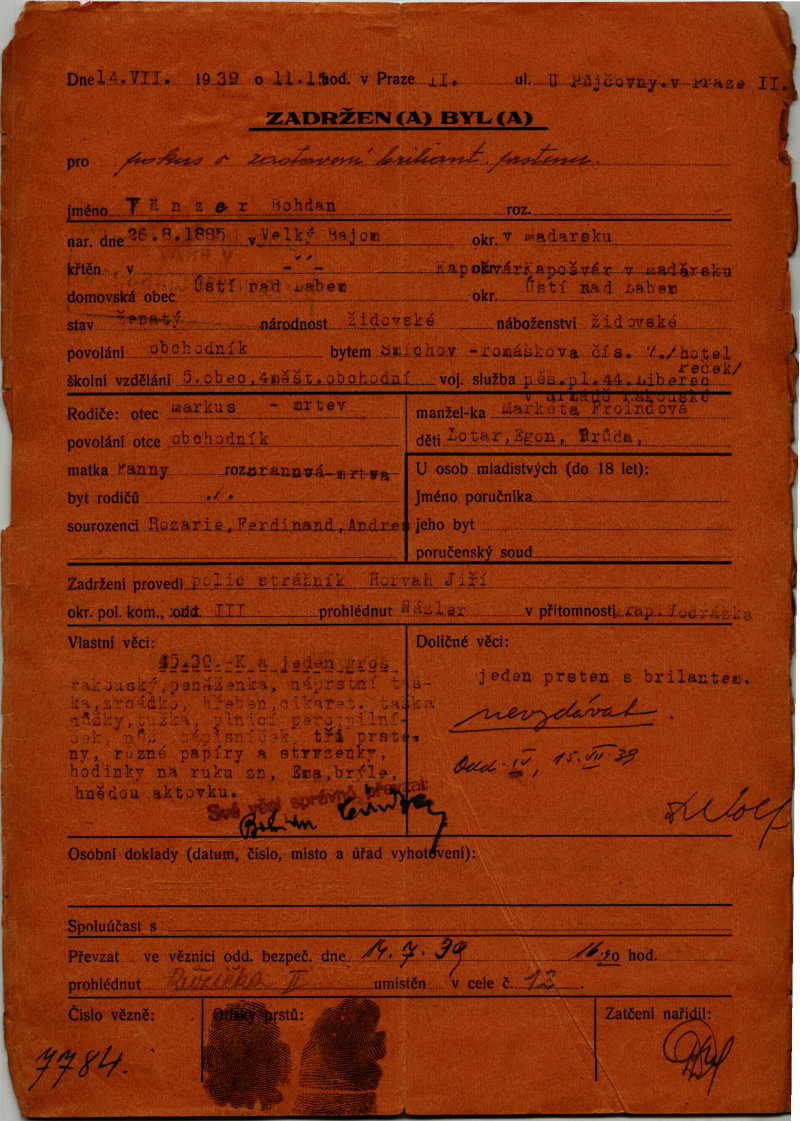 Nationalarchiv Prag > Polizei-Direktion Prag > 1941-1950 > T > Tänzer Bohdan