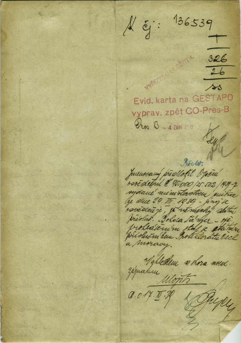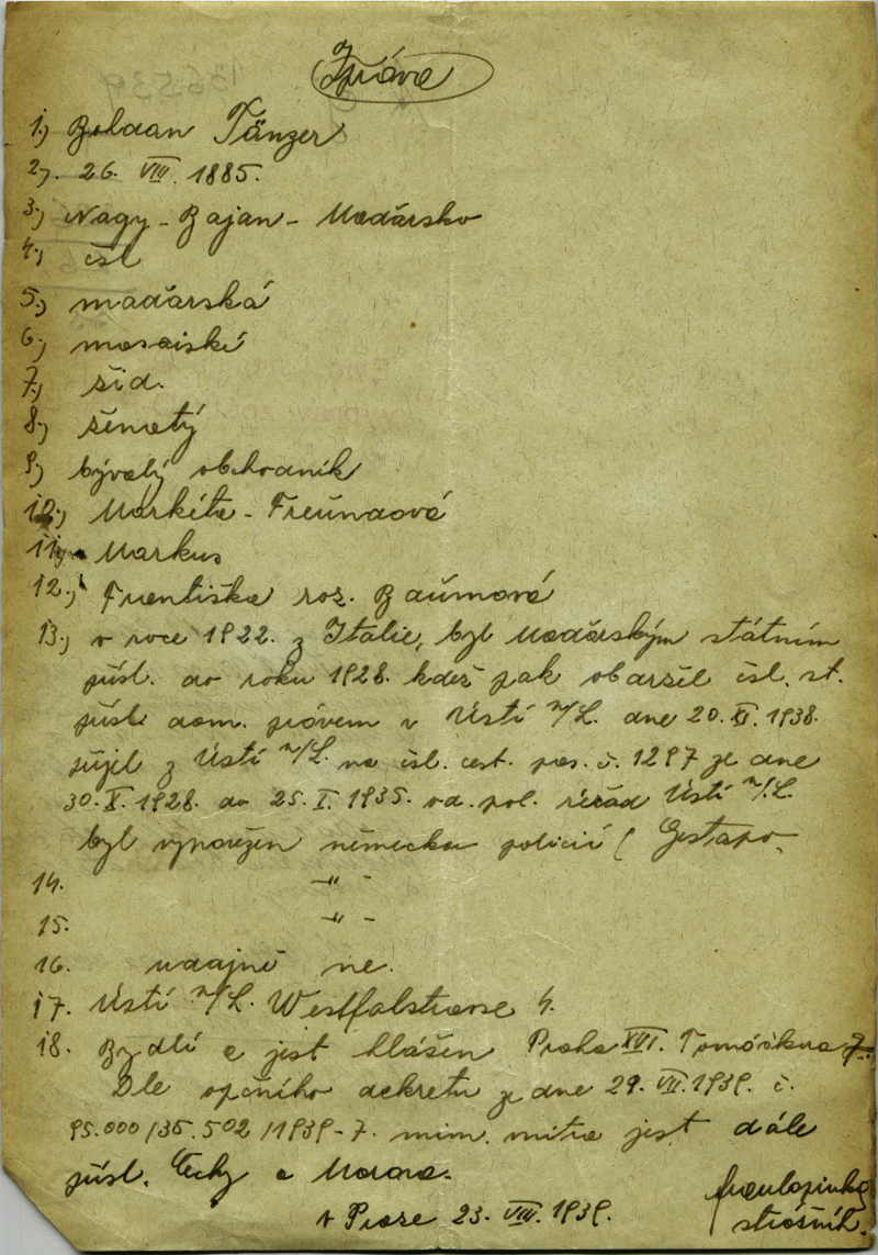 Nationalarchiv Prag > Polizei-Direktion Prag > 1941-1950 > T > Tänzer Bohdan