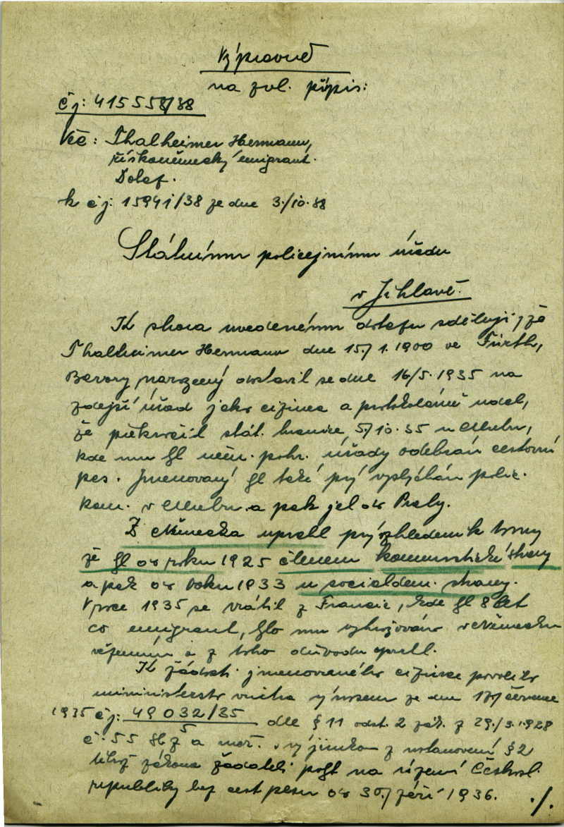 Nationalarchiv Prag > Polizei-Direktion Prag > 1931-1940 > T > Thalheimer Heřman