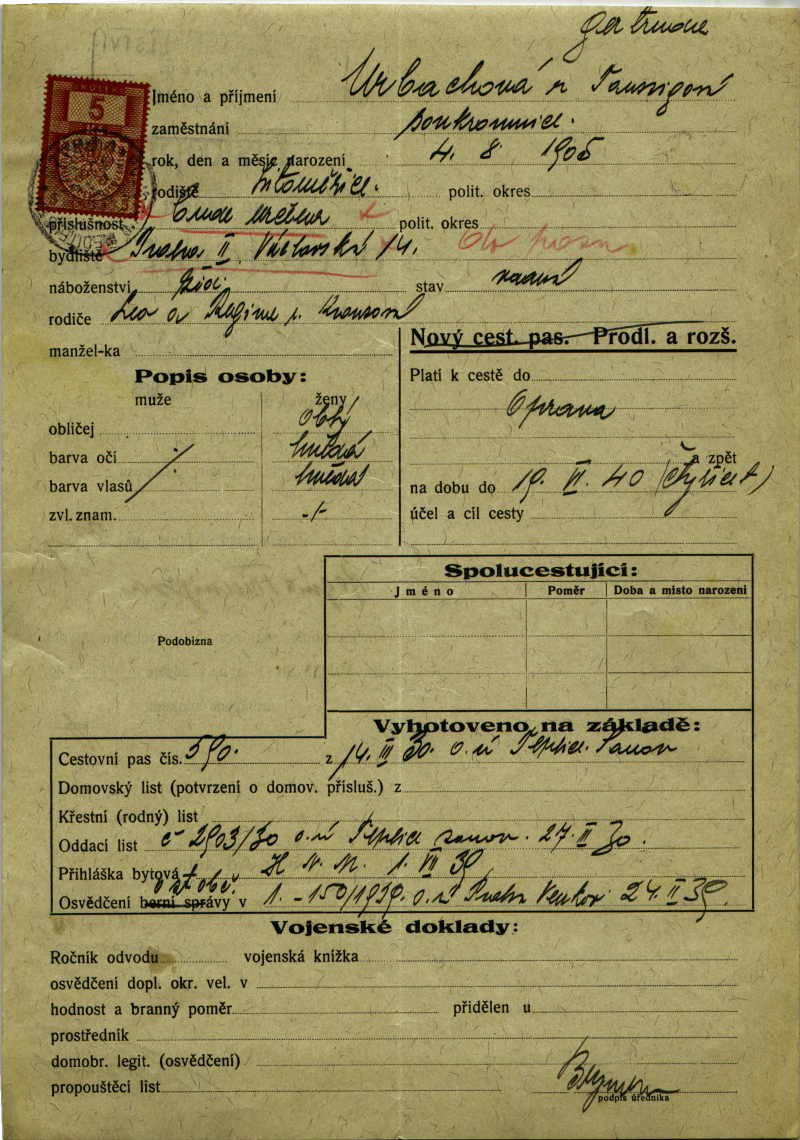 Nationalarchiv Prag > Polizei-Direktion Prag > 1931-1940 > U > Urbachová Gertruda
