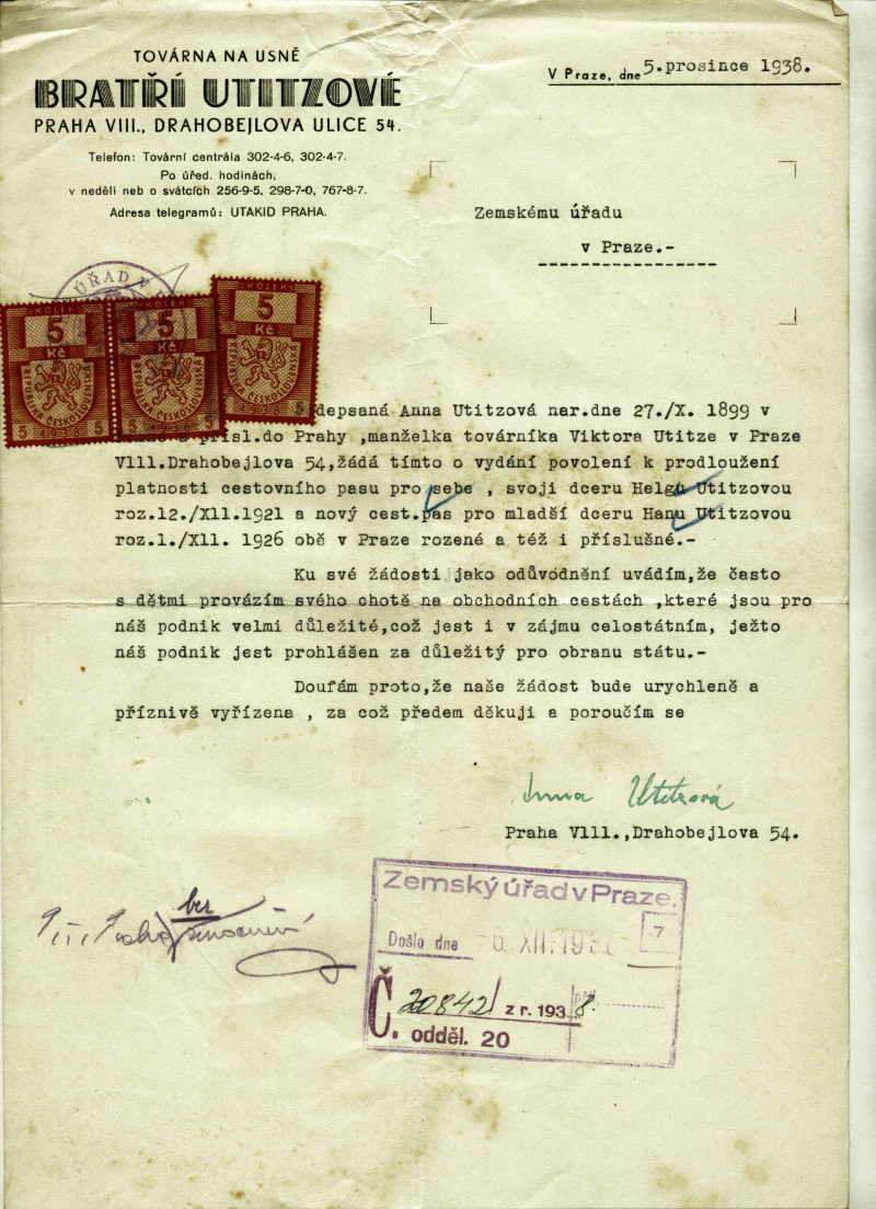 Nationalarchiv Prag > Polizei-Direktion Prag > 1931-1940 > U > Utitzová Anna