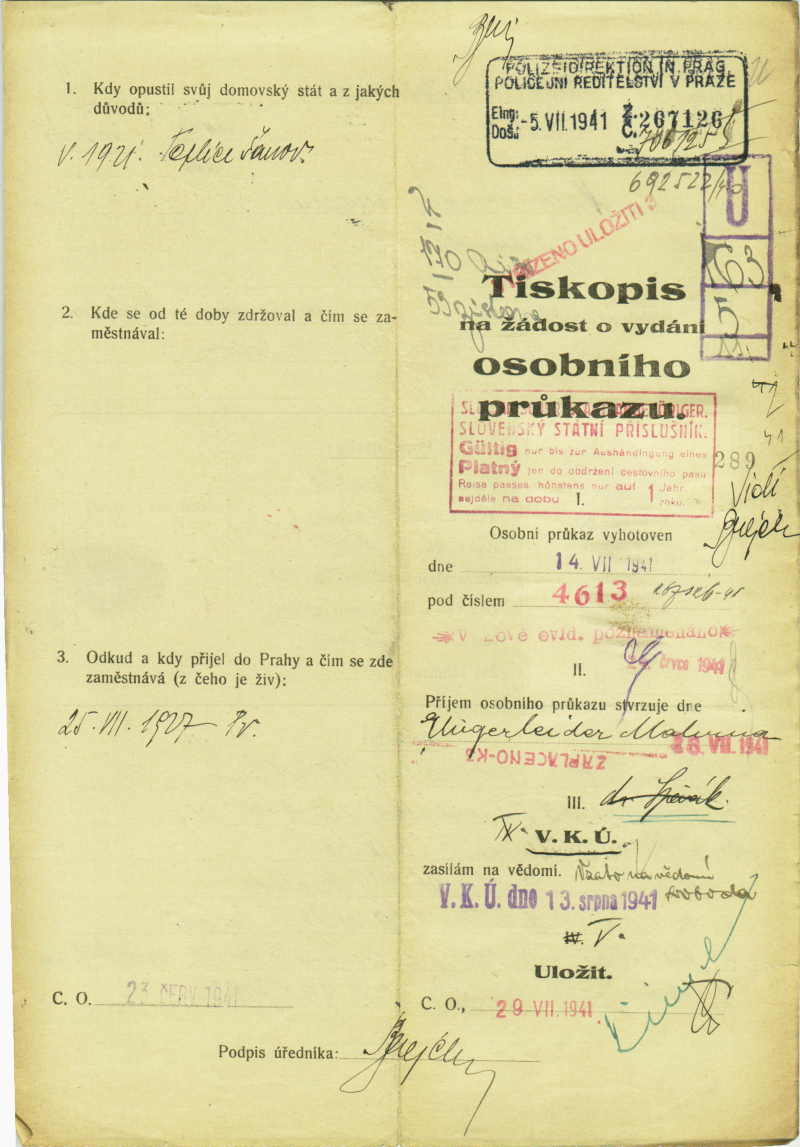 Nationalarchiv Prag > Polizei-Direktion Prag > 1941-1950 > U > Ungerleiderová Malvína