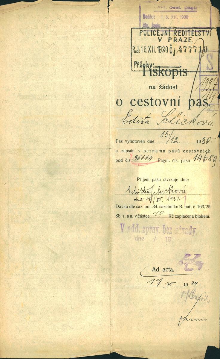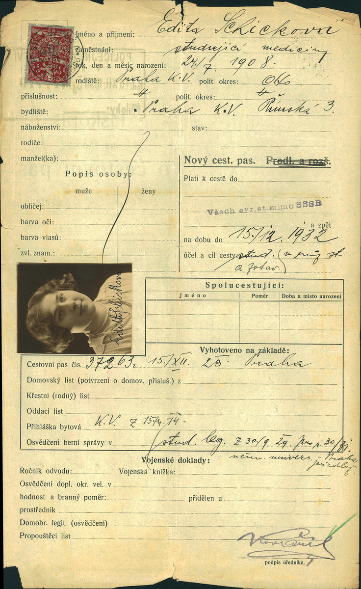 Janowitzová Edita: Žádost o vydání cestovního pasu