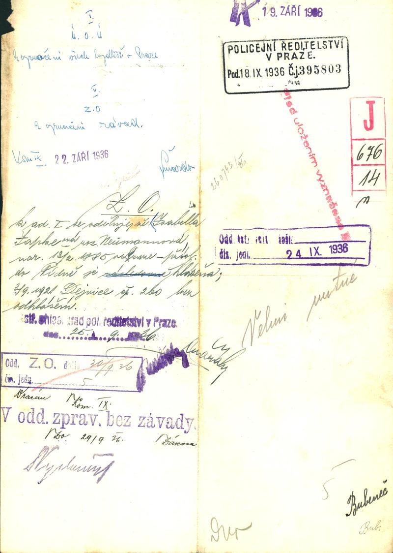 Nationalarchiv Prag > Polizei-Direktion Prag > 1931-1940 > J > Japkeová Izabela