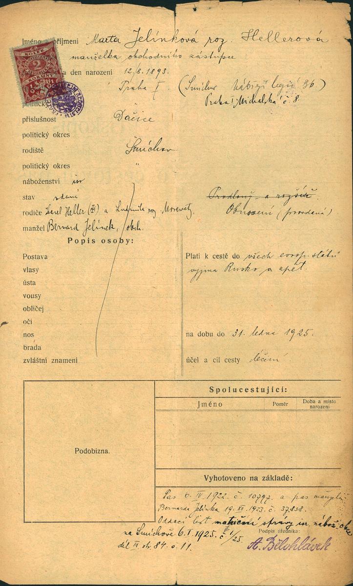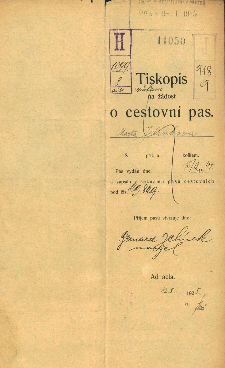 Jelínková Marta: Žádost o vydání cestovního pasu