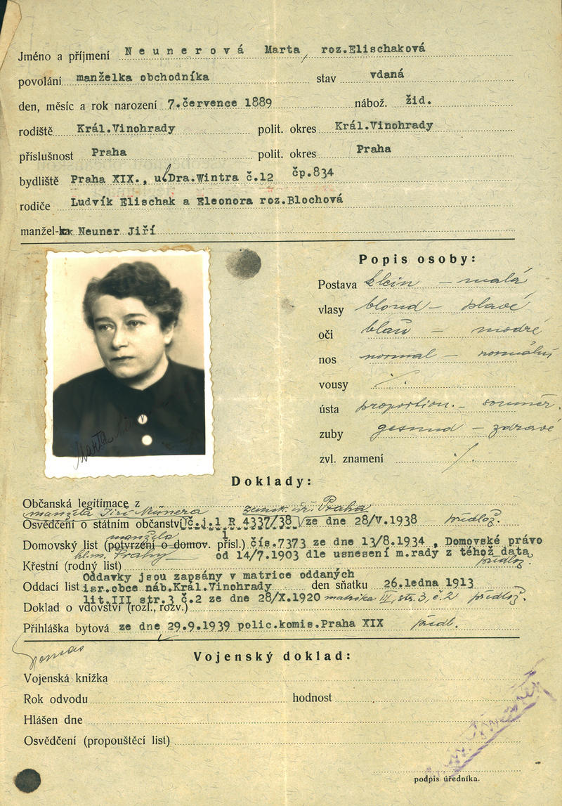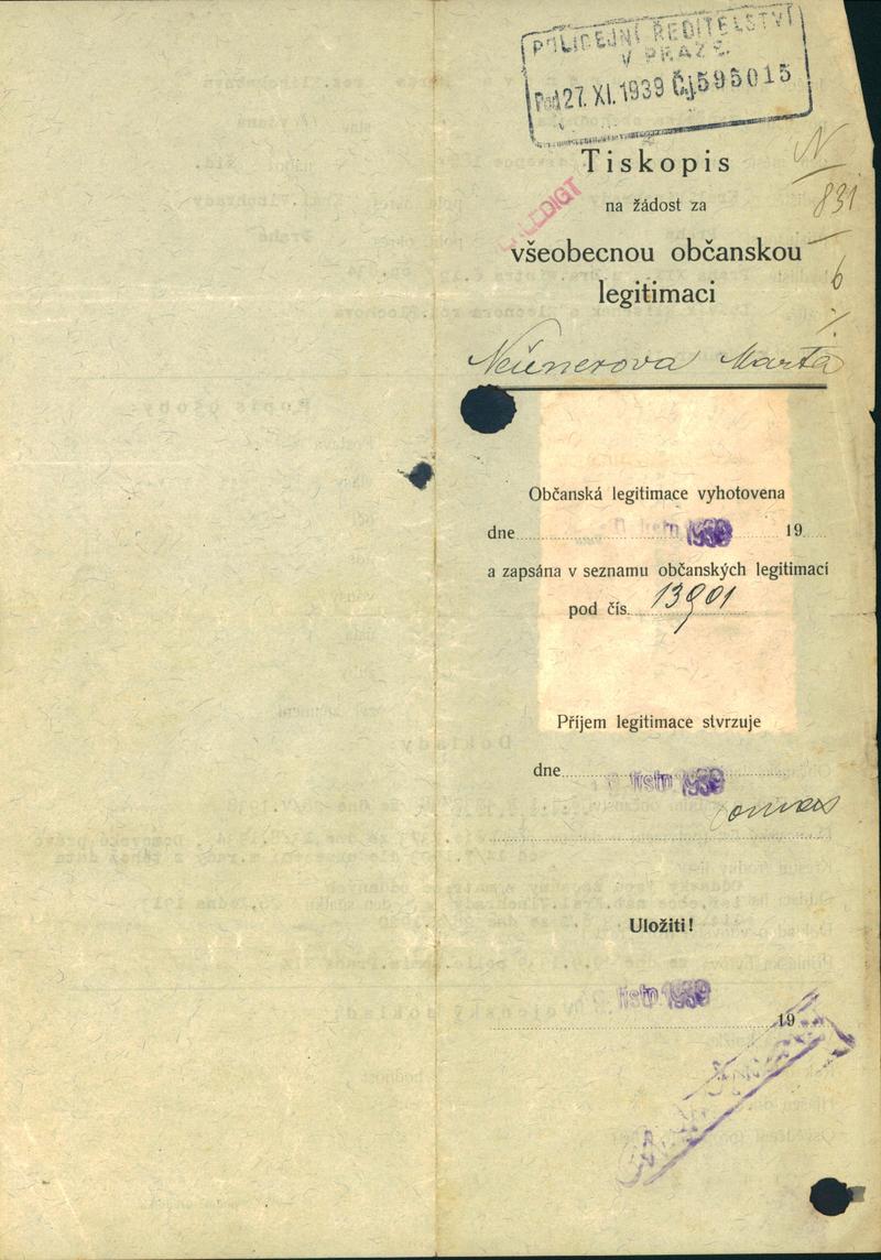 Neunerová Marta: Žádost o vydání občanské legitimace