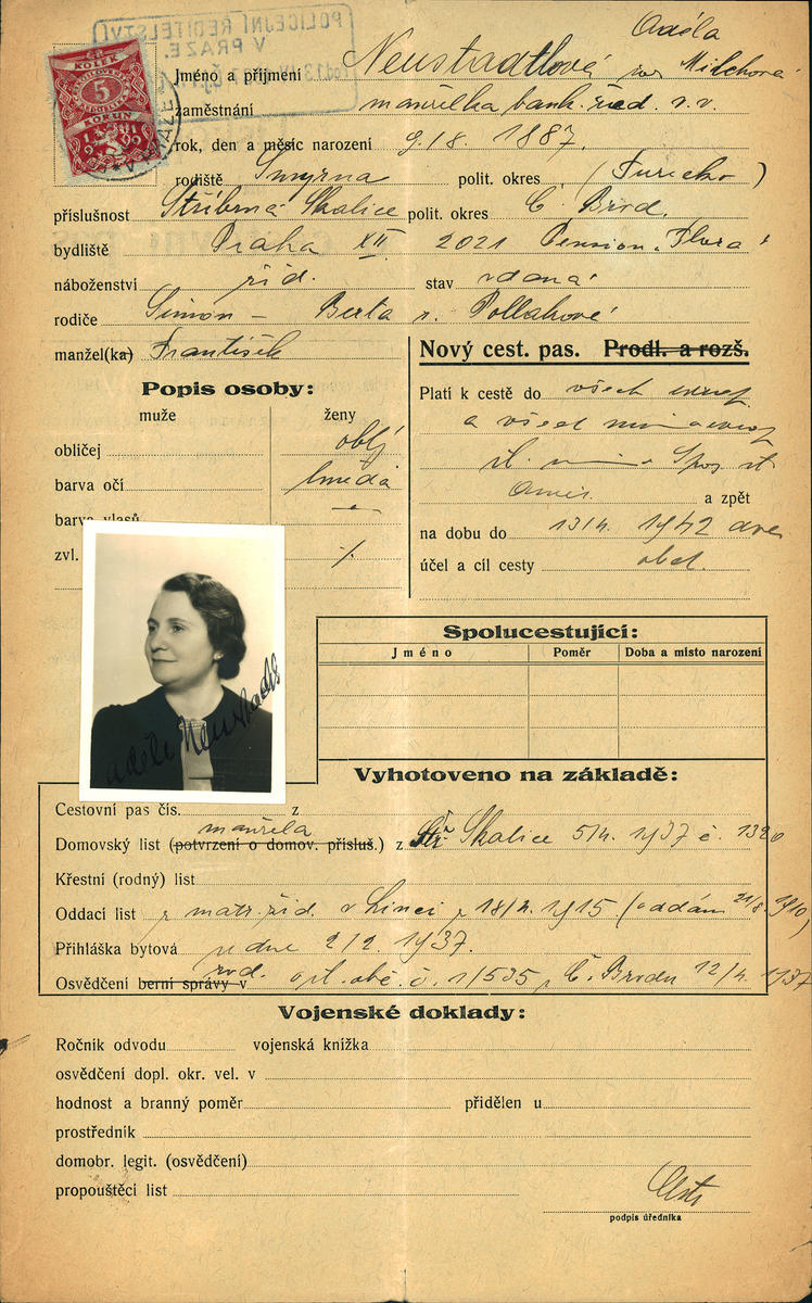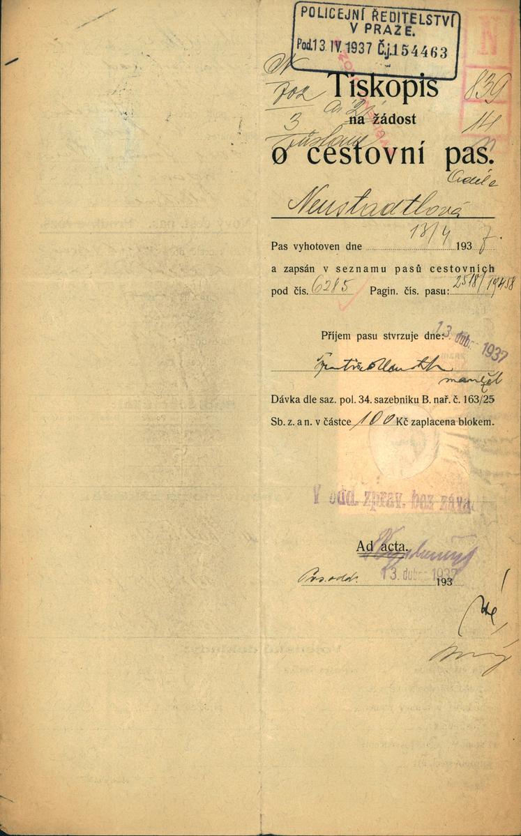 Neustadtlová Adéla: Žádost o vydání cestovního pasu