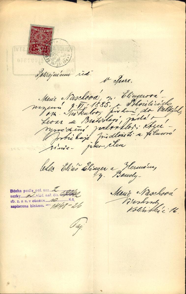 Naschová Marie: Žádost o vystavení vysvědčení zachovalosti