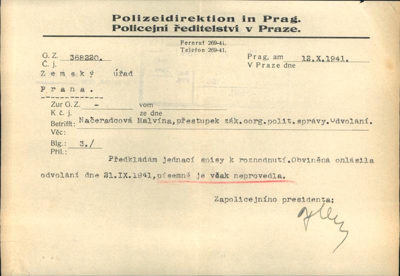 Nationalarchiv Prag > Polizei-Direktion Prag > 1941-1950 > N > Načeradcová Malvína