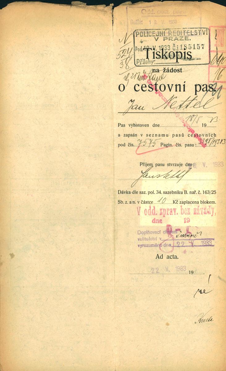 Nationalarchiv Prag > Polizei-Direktion Prag > 1941-1950 > N > Nettel Jan