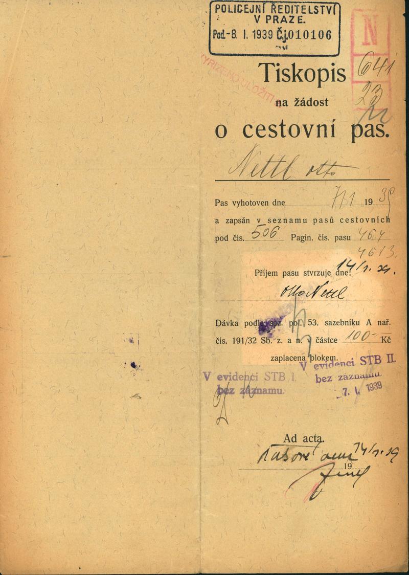Nationalarchiv Prag > Polizei-Direktion Prag > 1941-1950 > N > Nettl Otto