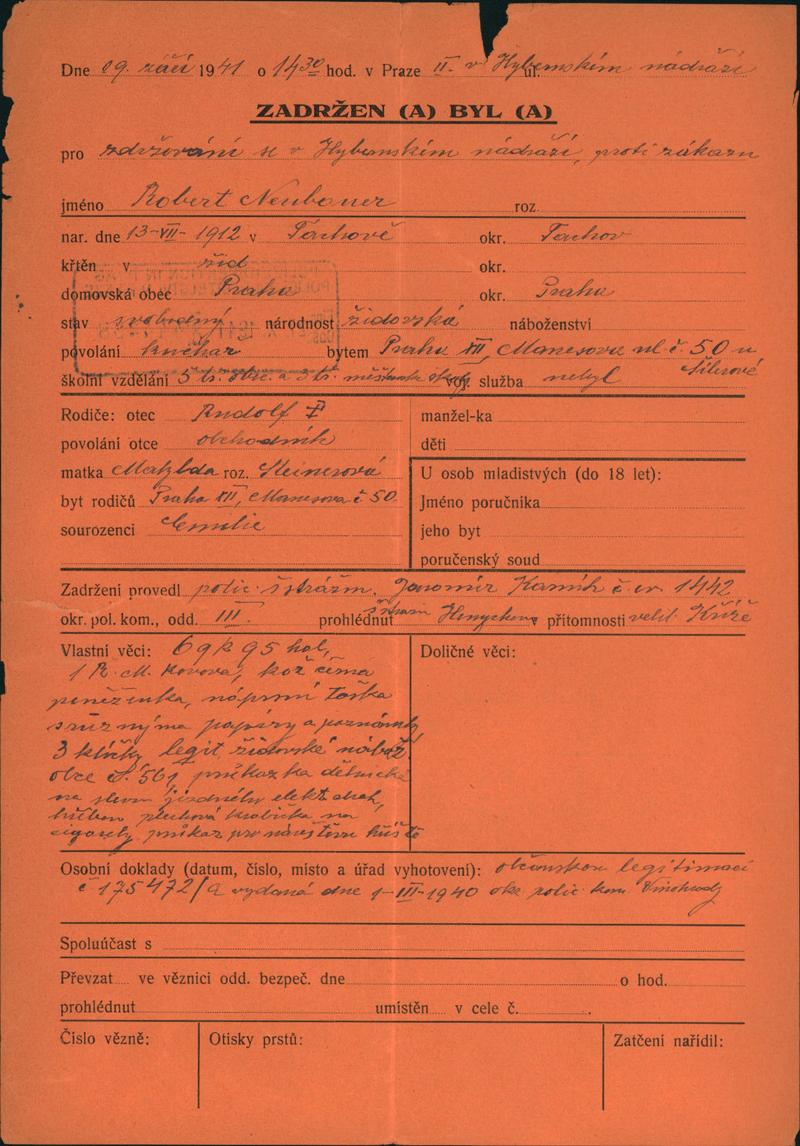 Nationalarchiv Prag > Polizei-Direktion Prag > 1941-1950 > N > Neubauer Robert