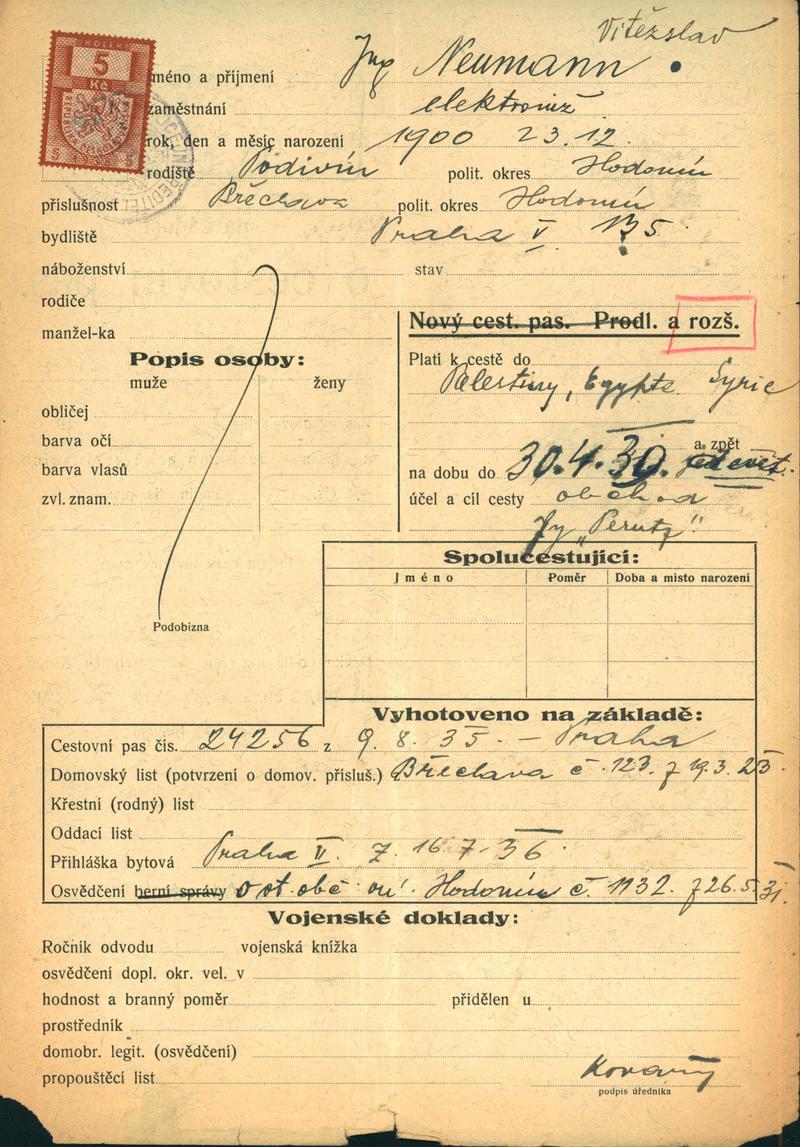 Neumann Vítězslav: Žádost o rozšíření cestovního pasu