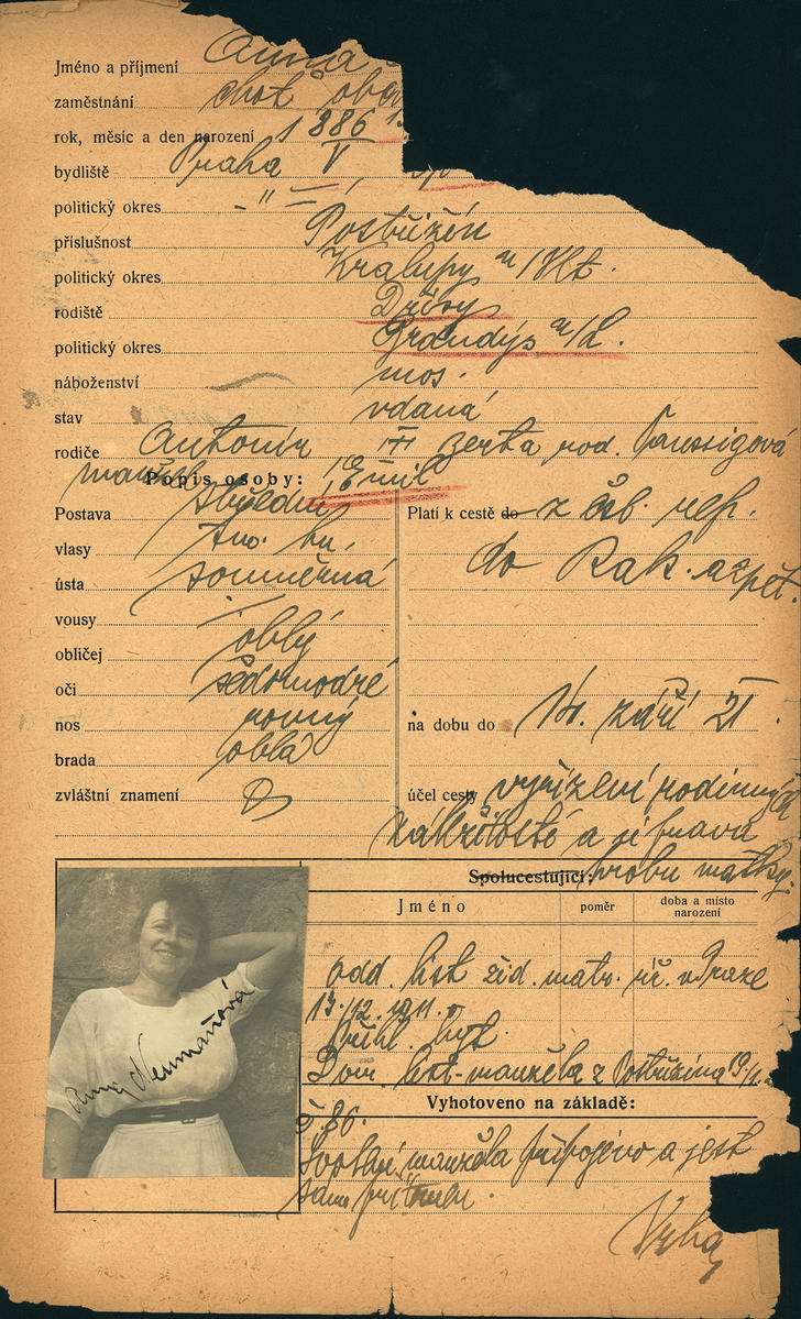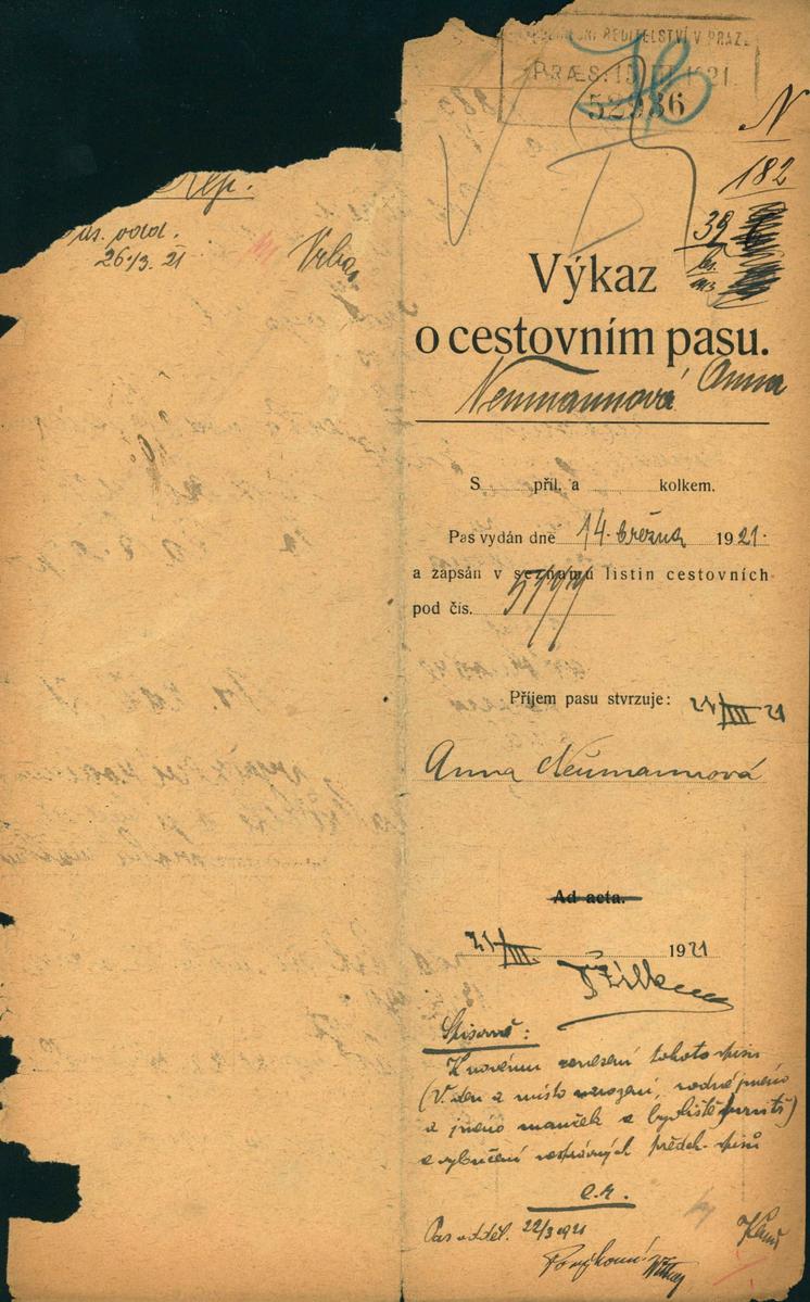 Neumannová Anna: Žádost o vydání cestovního pasu