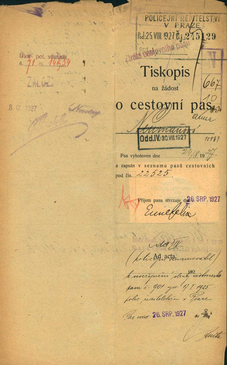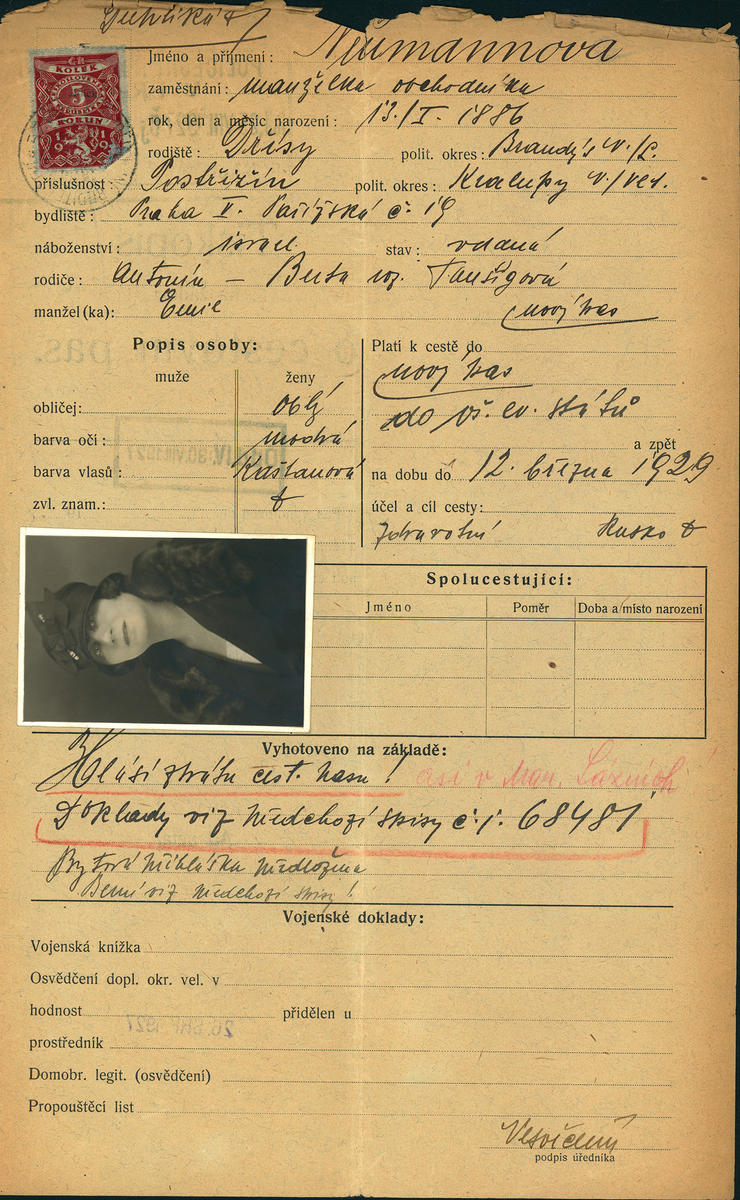 Neumannová Anna: Žádost o vydání cestovního pasu
