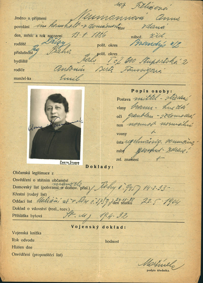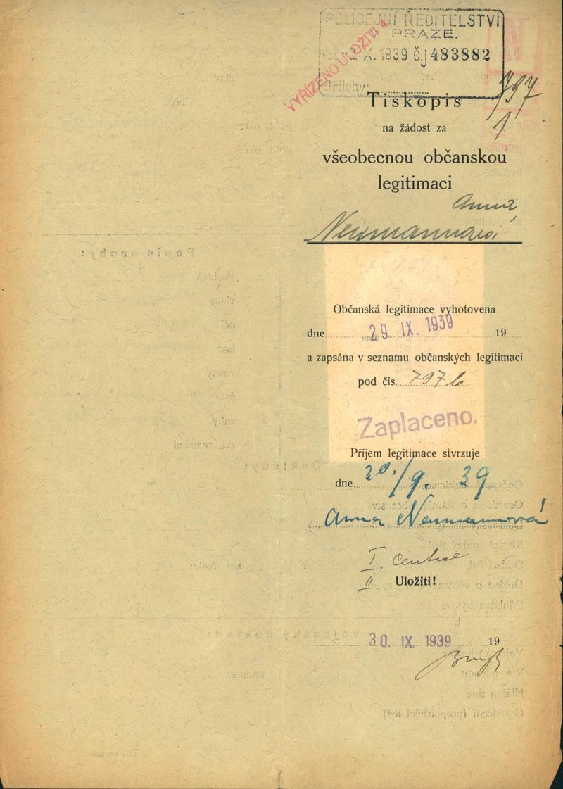 Neumannová Anna: Žádost o vydání občanské legitimace
