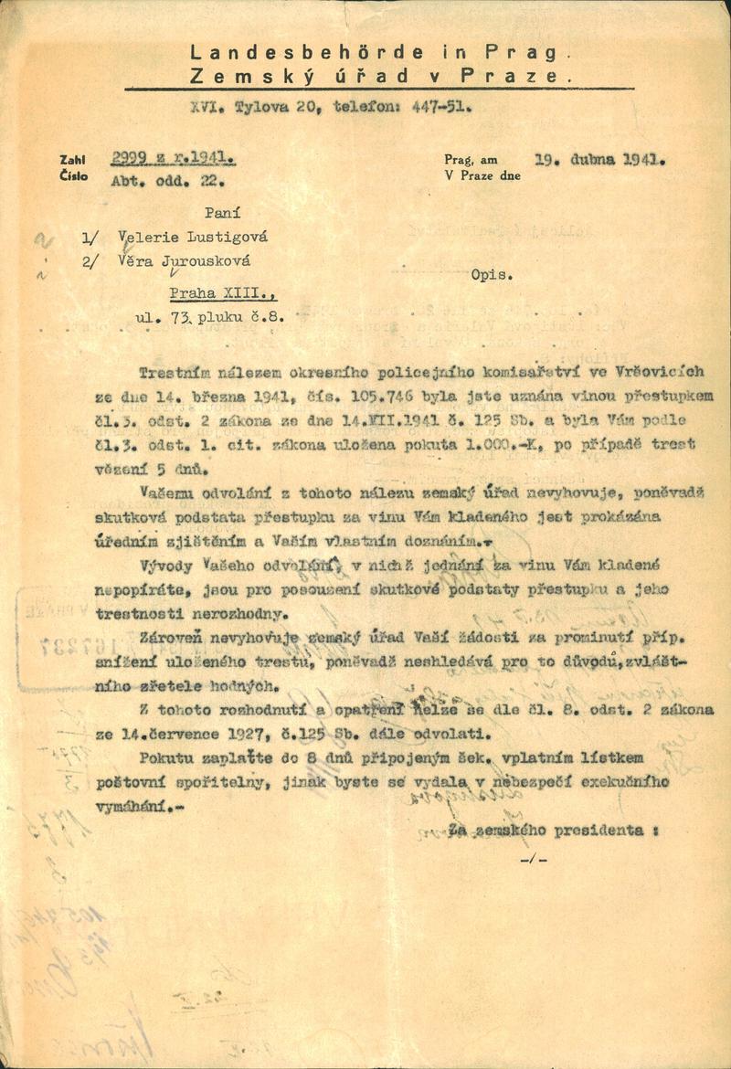 Nationalarchiv Prag > Polizei-Direktion Prag > 1941-1950 > J > Jiroušková Věra