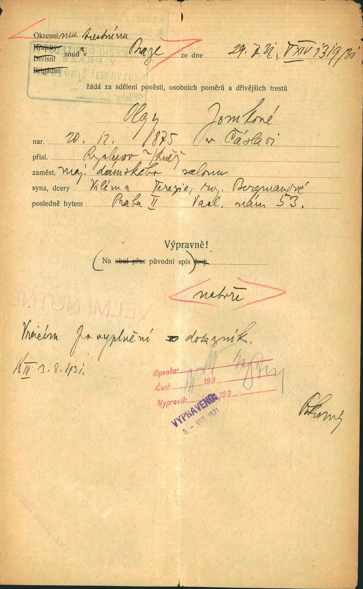 Nationalarchiv Prag > Polizei-Direktion Prag > 1941-1950 > J > Jomeková Olga
